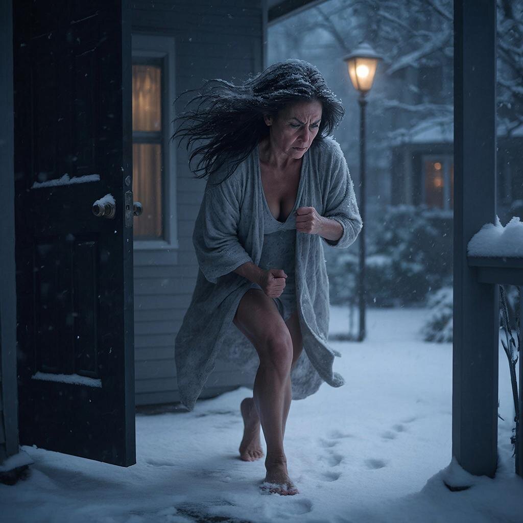 Дверь хлопнула так, что задрожали стекла в соседских окнах. Марина босиком стояла на крыльце в тонком халате, и первые снежинки уже ложились ей на плечи.
