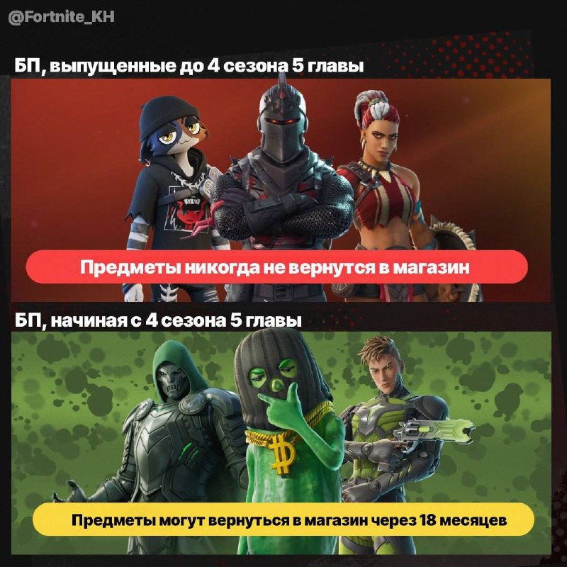 ⚠️Уточнение про возвращение боевых пропусков • В магазин могут вернуться только предметы БП, начиная с 5 главы 4 сезона • Косметика из 1-4 глав не планируется к возвращению • Предметы из 1-3 сезонов 5 Главы также не вернутся 🔍 Поиск тиммейта • Наш чат 💬 ✈️ ZONAFN • #Fortnite #Фортнайт