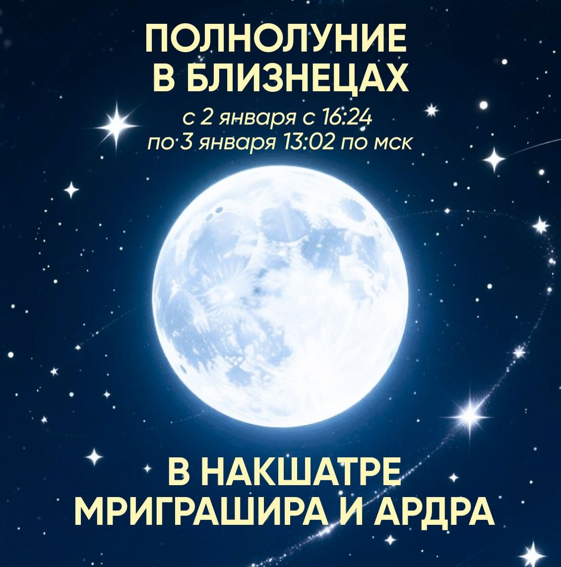 Луна побудет здесь всего час и перейдет в жесткую энергию накшатры Ардра, где и будет пик Полнолуния. ❗️ Мригашира несет энергию исполнения желаний и достижения целей. С учетом выходных – это идеальный день для создания карты желаний, построения целей на 2026 год и празднования своих уже случившихся успехов. ❗️ Ардра подхватывает серьезность намерений и будет благоприятной для обучения и построения планов. Важно быть осторожными в суждениях, потому что в этот день Луна добавляет резкости и категоричности, обостряет желания и устремления. С одной стороны, на таком настроении хорошо замахиваться на смелые цели, а с другой – есть шансы утонуть в гордыне и разогнать возможных единомышленников, потому что Ардрой управляет Раху – мастер иллюзий и туманных преувеличений. ❗️Стараемся быть объективными к себе и к окружающим. ❗️Прекрасно в этот день отправиться в кино посмотреть дома сказку вместе с детьми, или же поищите классный детективный сериал и устройте вечер просмотра. ❗️Если вам уже