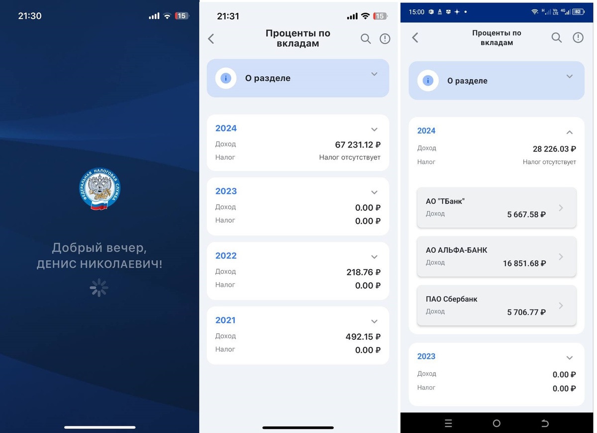 Здравствуйте уважаемые подписчики и гости моего канала. Кто следит за моим телеграмм каналом, тот знает что такое стузинг или кредитная карусель. Для тех кто не знает, объясню и покажу. Я беру кредитную карту с льготным периодом, вывожу или снимаю с них наличные. На видео ниже я с кредитной карты Платинум перевел себе на дебетовую карту БЕЗ КОМИССИИ 100 тысяч! С этого дня, как я снял наличные, открывается льготный период, который длиться от 50 до 180 дней. В этот же день, я открываю вклад или накопительный счёт в банке, и эти наличные, зачисляю на этот вклад или накопительный счет. И все это время деньги лежат под процентом и приносят мне доход. Таким делом я занимаюсь с февраля 2024 года. У меня сначала была всего одна кредитная карта, сейчас у меня их несколько. Открывал я вклады и накопительные счета на себя и на матушку и официальный суммарный доход от стузинга за 2024 год составил 95457 рублей. Как видите из скриншота, 2021 - 2024 года вкладов у меня практически не было. Сей