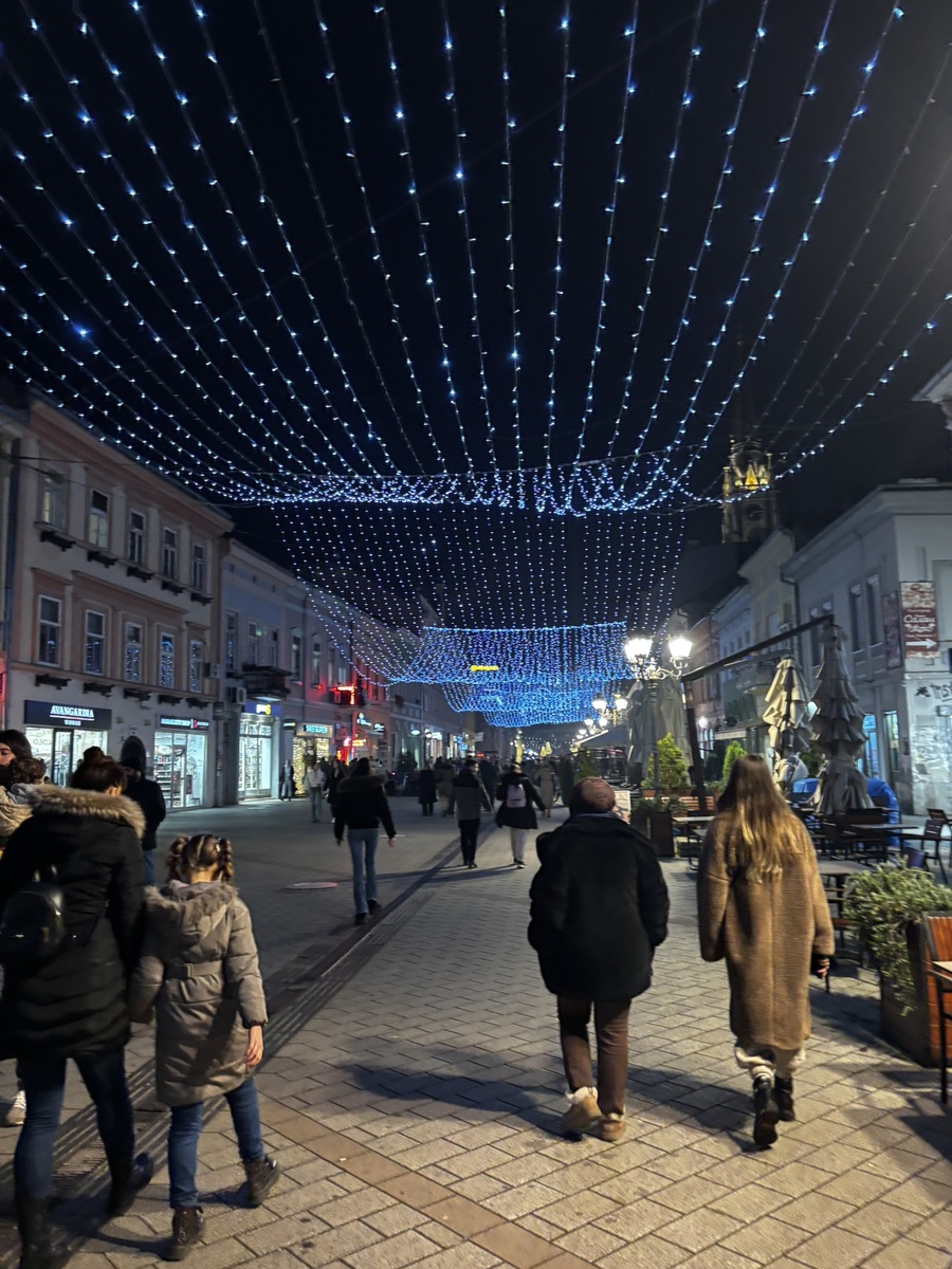 Официально считается, что сербы не отмечают католическое Рождество, а нерабочие дни в Сербии - 1 и 7 января. При этом на главной площади Нови Сада с середины декабря проходят рождественские ярмарки с глинтвейном, аккуратными кострами в железных сетках, лавками с медом, копчеными колбасами, плескавицами и сладостями. С 22 по 26-е на многоярусной елке в центре города шел фестиваль детских хоров. И это было прекрасно. Мы несколько раз проходили мимо этого сверкающего и гудящего великолепия на капоэйру с ребенком и каждый раз восхищались духом Рождества. Он тут очень ощущается! А католическое оно или православное - здесь не так уж и важно.
