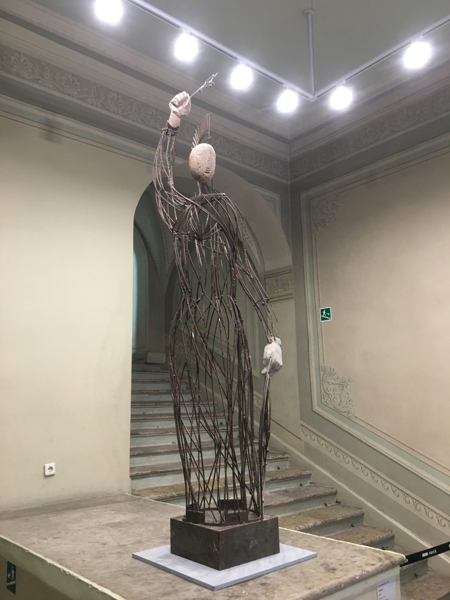 Новогодние каникулы - не самое лучшее время для похода в Эрмитаж, там много народу. Поэтому я сегодня не про Эрмитаж, а про музей на канале Грибоедова 103, МИСП (Музей искусства Санкт-Петербурга XX - XXI веков). Я его знала и раньше, ходила на выставки и на ночь музеев, но недавно они заполучили соседнее здание, Грибоедова 101, особняк Алафузовых, там еще не была. Очень радуюсь, когда особняк принадлежит народу, а не госучреждениям или частникам. То есть когда он принадлежит народу(мне) - я покупаю билет и хожу себе спокойно, а вот госучреждения и частники бывают хорошие и вредные. Хорошие пускают посмотреть свои владения с экскурсиями по записи, а вредные (госучреждения и частники) сидят в своих особняках и дворцах, как собака на сене, и не пущают людей. Выставка называется "Фрагменты эпох", она на втором этаже особняка Алафузовых, но начинается уже на лестнице. Мне очень понравилось идти по этой лестнице и встречаться со скульптурами. Можно конечно сказать, что этой лестнице больше