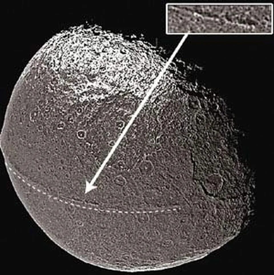 «Кассини», пролетавший мимо в 2007 году, прислал последние чёткие снимки. После этого все миссии к Сатурну «внезапно» стали планироваться так, чтобы не приближаться к Япету. Данные с «Кассини» засекречены на десятилетия. Почему? На снимках было что-то лишнее? Да!!!
