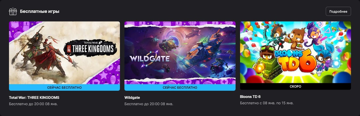 Здравствуйте, уважаемые читатели! 👁️ Сегодня в магазине Epic Games Store можно бесплатно получить игру, которая увлечёт всех любителей истории и масштабных стратегий. Total War: Three Kingdoms перенесёт вас в Древний Китай, где вы сможете принять участие в кровопролитных войнах и ощутить атмосферу того времени. Эта игра — настоящий кладезь исторических деталей и политических интриг. В ней вы сможете примерить на себя роль одного из могущественных правителей и попытаться объединить разрозненные земли Китая под своей властью. Каждое ваше решение будет иметь вес и последствия, а каждая битва — свою цену. Кроме того, в магазине сейчас раздают онлайн-шутер Wildgate с космическими кораблями. Если вам по душе динамичный геймплей и космические баталии, то это предложение точно для вас! Если в вашем регионе игры недоступны, можно создать аккаунт с другим регионом. Это может показаться сложным, но результат того стоит! А теперь давайте обсудим: