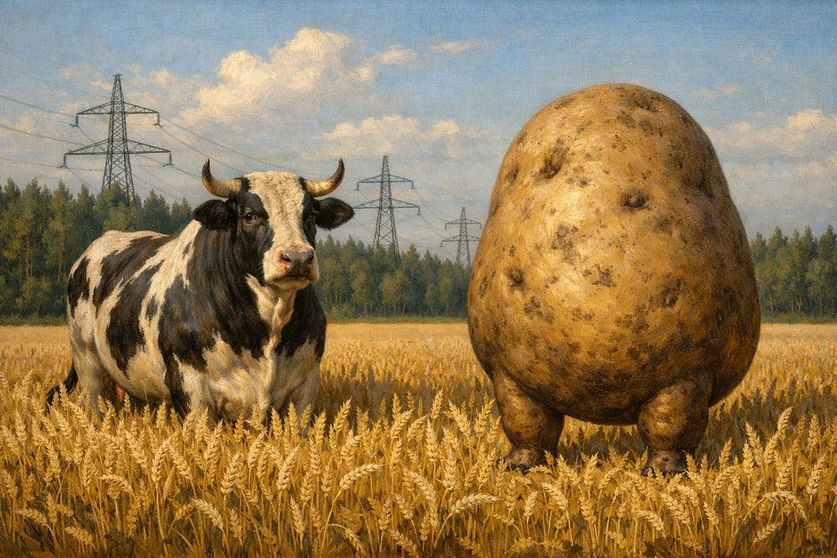 Итоговая картина следующая. Выращиваем 18–20 млн тонн (что делает нас великой картофельной державой), при этом каждый год примерно 3% экспортируем и те же 3% импортируем, чтобы сгладить сезонность и оптимизировать логистику. 97% выращиваем и съедаем сами.