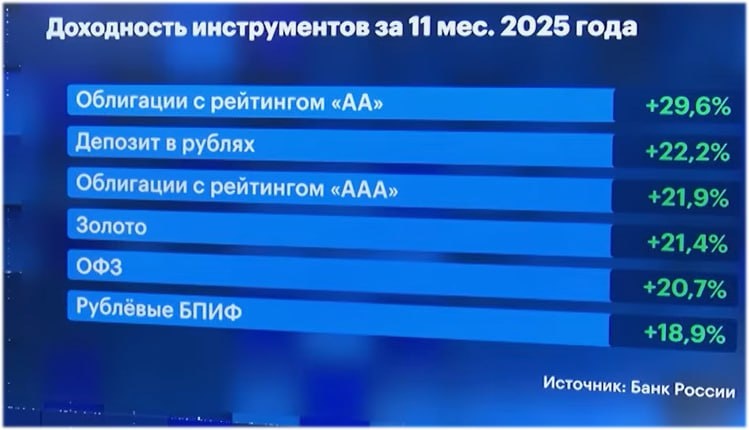 % Остальные инструменты оказались куда лучше. Табличка по итогам 11 месяцев, но тем не менее... Это к вопросу о недавней статьей, про 100% в акциях. А на какие инструменты делали упор в 2025 году вы?
