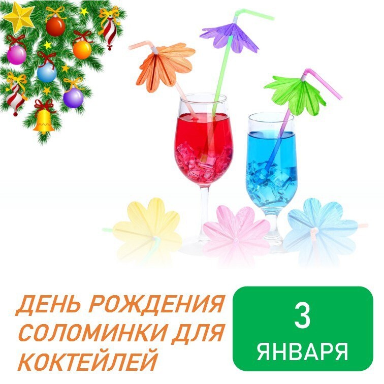 3 января 1888 года владелец фабрики по производству бумажных мундштуков для сигарет Марвин Стоун получил патент США на изобретение «соломинка для коктейлей». Первая запатентованная трубочка была изготовлена из простой бумаги. Постепенно дизайнеры усовершенствовали внешний вид соломинки. Они придумали трубочки разного красочного содержания, размера, с украшениями, светящиеся в темноте. Большое внимание они уделили форме. Так появились соломинки в виде спиралей, колец, сердечек. Приспособление для втягивания напитков из бокала назвали «соломинкой» потому, что изначально для этой цели использовали высушенный стебель злаков (соломинку). 🍹🥤Пейте вкусные новогодние коктейли и наслаждайтесь общением с близкими и родными! #ИнспекцияпогосохранеОКНЕАО #еао79