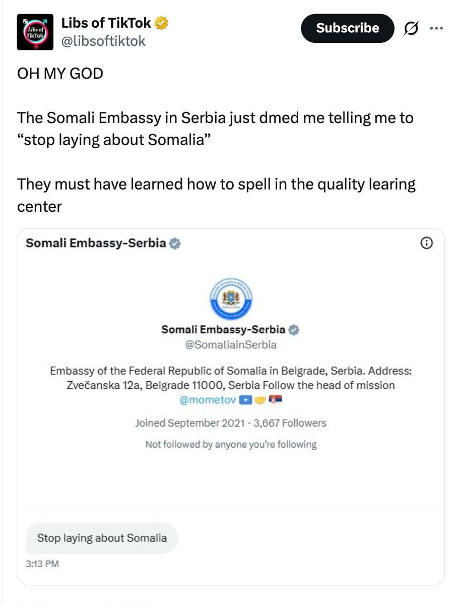 Somalia tells conservative influencer exposing fraud to ‘stop laying about Somalia’