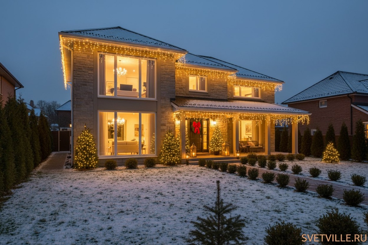 ✨ Украшаем дома и коттеджи под ключ: крыша 🎄 фасад 💡 вход 🏡 деревья и ёлки ✨ Работаем аккуратно и оперативно. Пришли фото дома +7(999)8508849 📲. Светвилл с 2016 года, реализовали более 800+ проектов,делали для известных клиентов. 🔎svetville.ru #svetville #светвилл #подсветка #иллюминация #гирлянды #новыйгод #декор #москва #спб