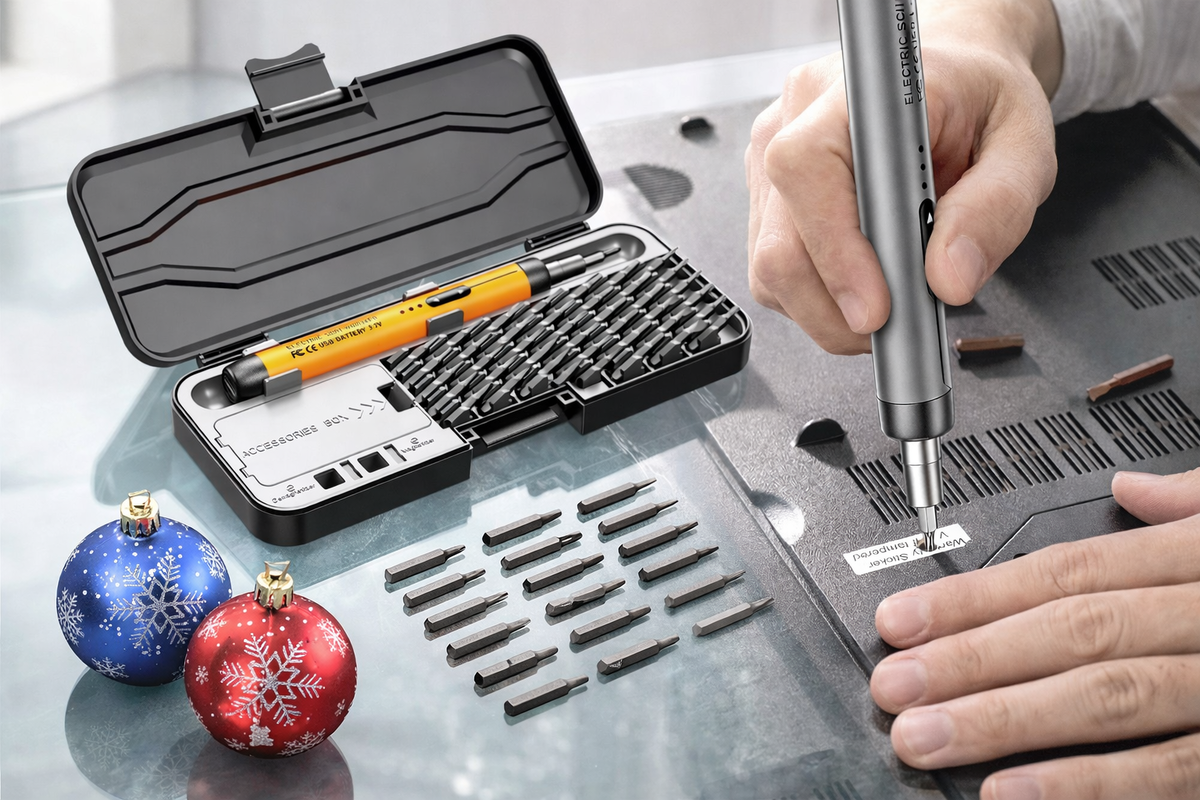 В комплект входит 6 медиаторов и 38 магнитных бит с разной формой наконечников — они надёжно удерживаются с помощью кейса для хранения. Интуитивное управление одной кнопкой питания делает этот инструмент простым даже для новичков.