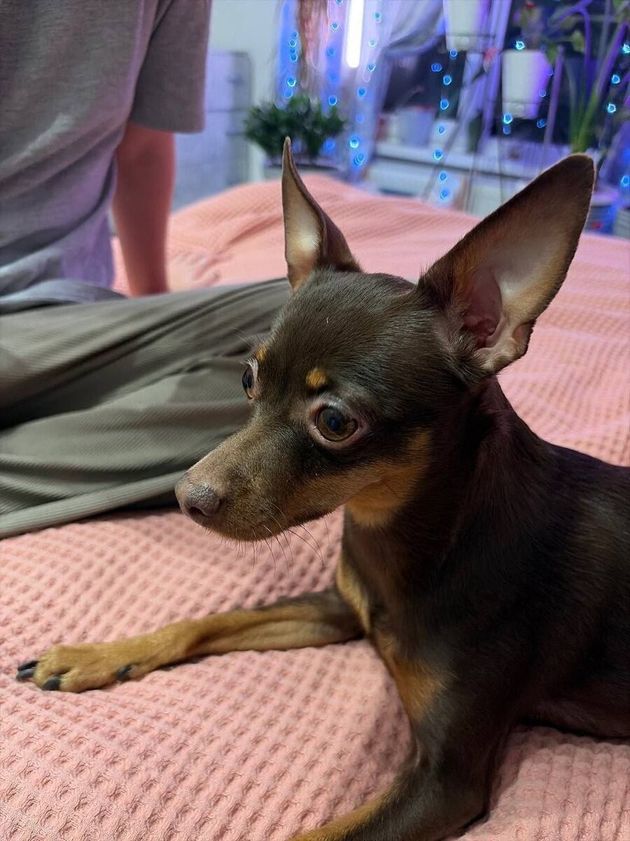 На Квадро в автобус 83 забежала собачка той чик шоколадная  девочка в комбинезоне разноцветном. Ищем хозяев. Ростов-на-Дону