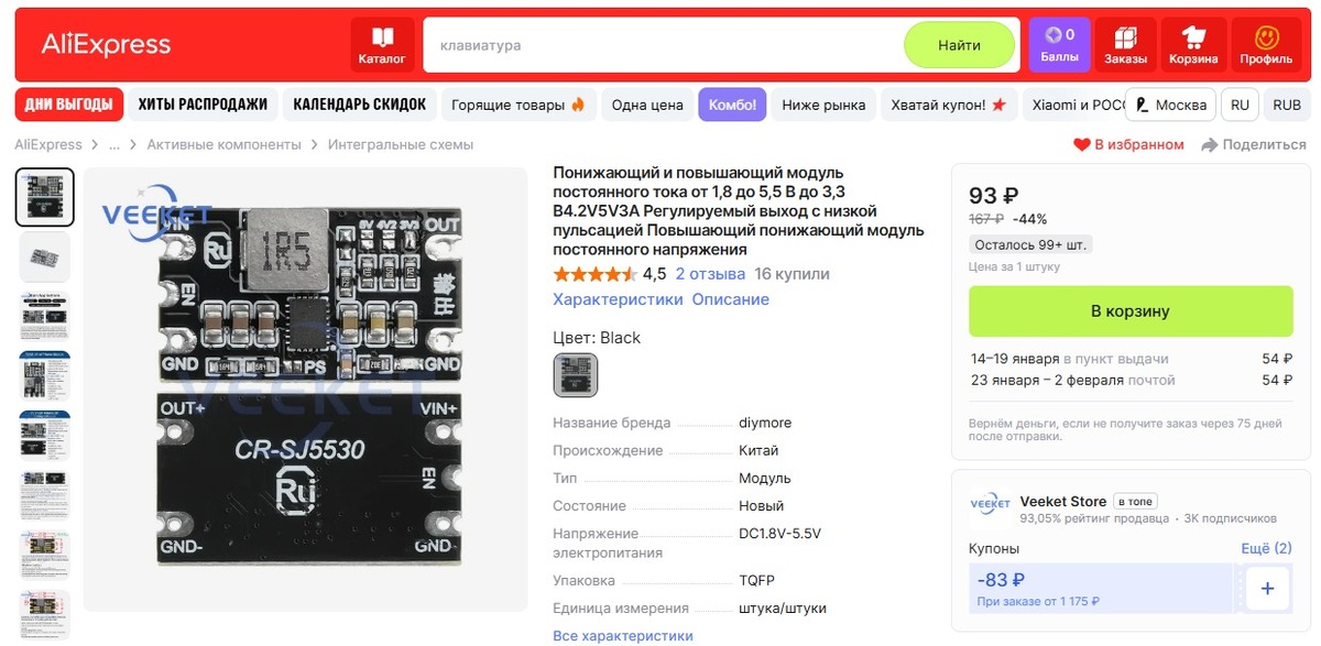 Страница товара: Вот такие характеристики обещают: Проверим его на входном от 1,8 до 5,5в