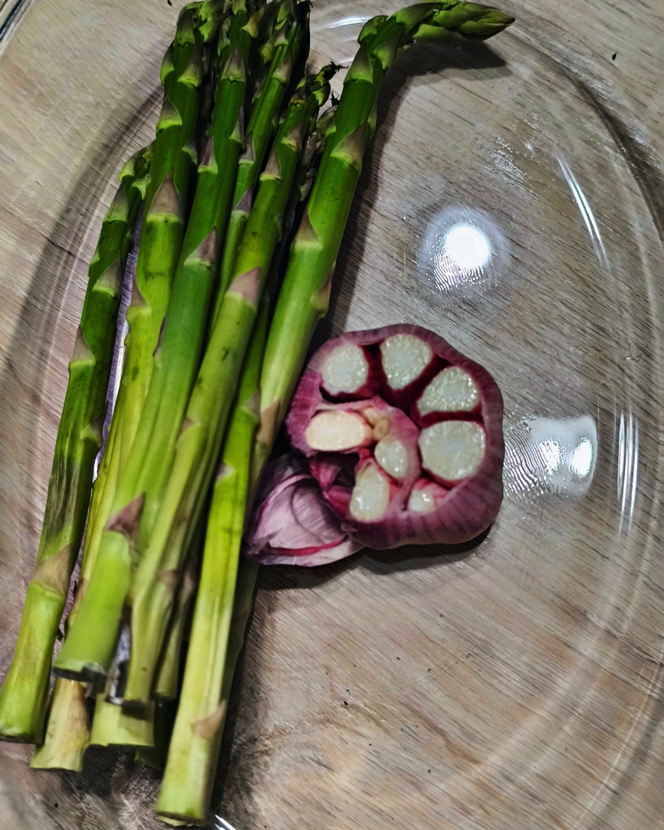 • Соль и свежемолотый черный перец (прочие приправы и зелень) по вкусу ■ Разогрейте духовку до 190-200°C. Возьмите целую, неразобранную головку чеснока. Срежьте верхушку (около 0.5-1 см), чтобы чуть обнажились дольки. Положите чеснок на кусок фольги, сбрызните оливковым маслом так, чтобы оно попало на срезы. Можно немного посолить.