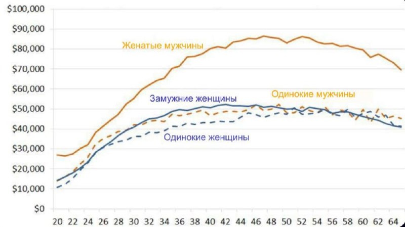 ? В экономике это явление давно изучено и даже имеет название – "Премия за брак". В среднем женатые мужчины зарабатывают на 10–30% больше, чем холостые, при сопоставимом возрасте, образовании и профессии. 📈 Что меняется после брака: • мужчины реже рискуют карьерой. • больше фокусируются на стабильном доходе. • начинают планировать на годы вперёд. Также часть бытовых и организационных задач уходит из фокуса мужчины – и это напрямую высвобождает ресурс под работу и карьеру. Отправляйте холостякам.