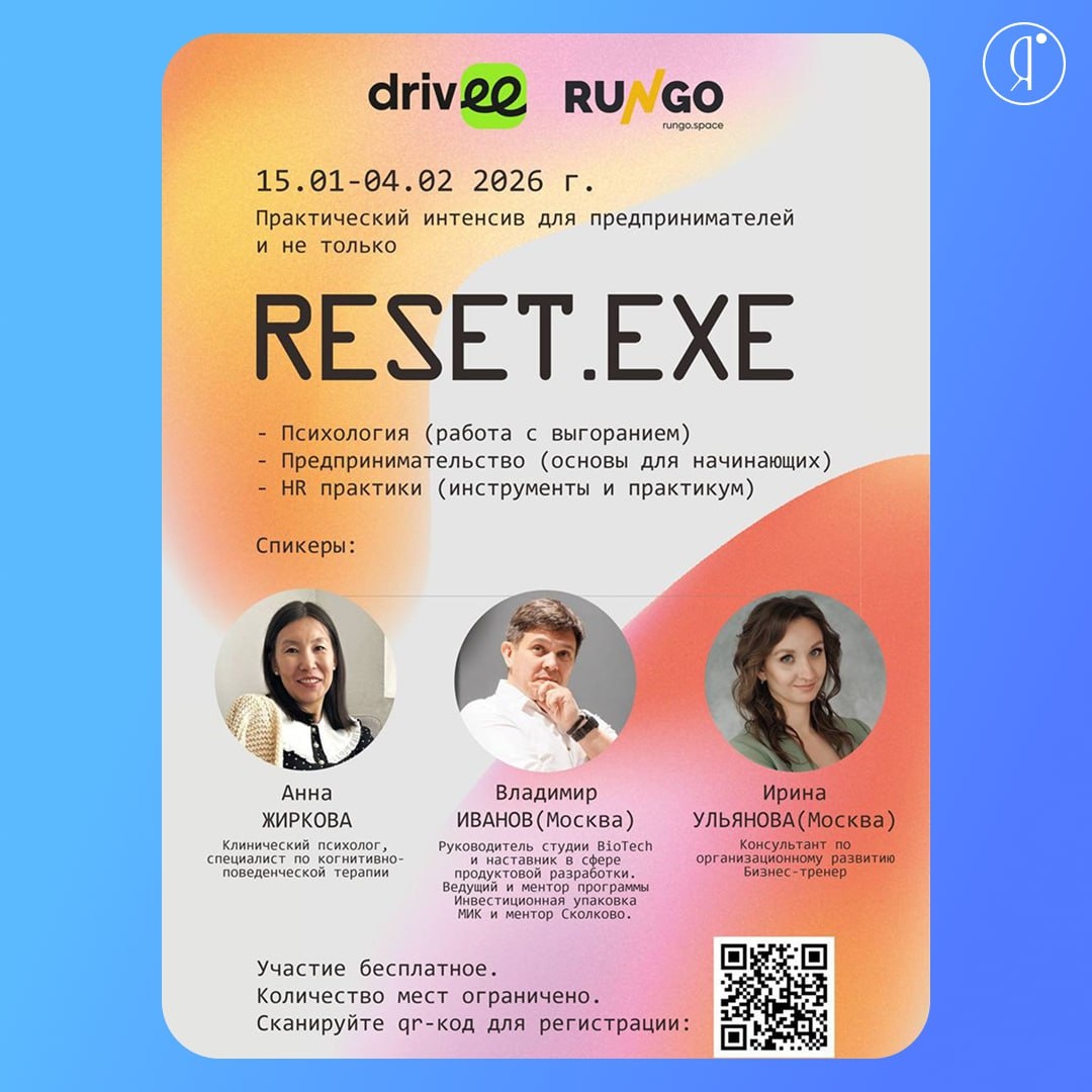 #МК Перезагрузка карьеры: интенсивный курс продолжительностью три недели Программа предназначена для специалистов, испытывающих профессиональную усталость или находящихся в поиске новых карьерных целей. Курс также рассчитан на тех, кто планирует запуск собственного проекта или стремится развить навыки уверенного управления командой. Основу программы составляют три практических направления для профессионального развития. 1. Неделя устойчивости. Для тех, кто устал и «горит» на работе. Вы получите простые инструменты для восстановления сил, борьбы со стрессом и создания личного плана баланса. 2. Неделя старта. Для тех, у кого есть идея, но нет понимания, как превратить её в продукт и первые продажи. Вы пройдёте путь от замысла до чёткого плана действий и расчётов для своего дела. 3. Неделя команды. Для руководителей и лидеров, которые хотят вдохновлять свою команду. Вы научитесь работать с мотивацией, создавать продуктивную среду и получите готовый план для внедрения. 15 января-4 ф