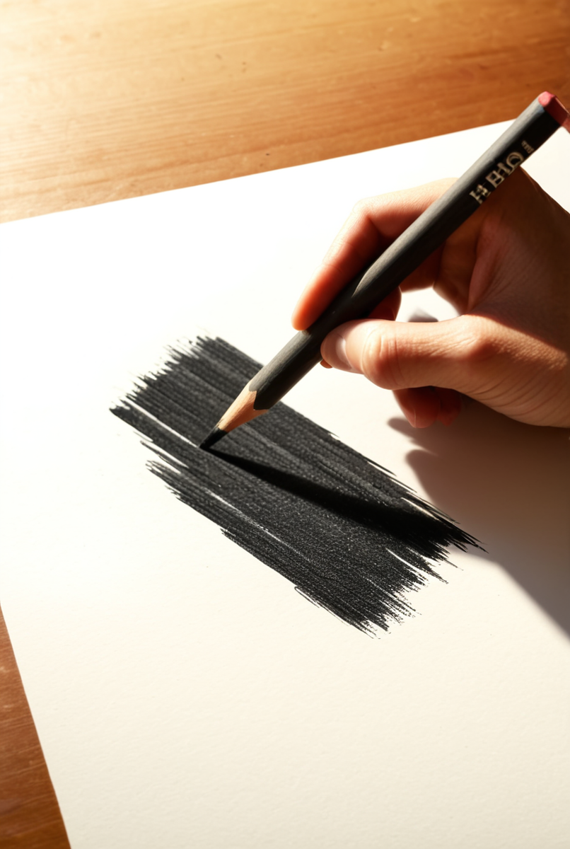 Маркировка карандашей: мягкий (B), твердый (H) и средняя твердость (HB) для создания тона, контраста и глубины черного