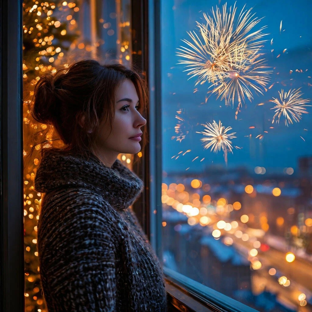 Силела у окна, смотрела на вспышки фейерверков. Где-то смеются, обнимаются, целуются.