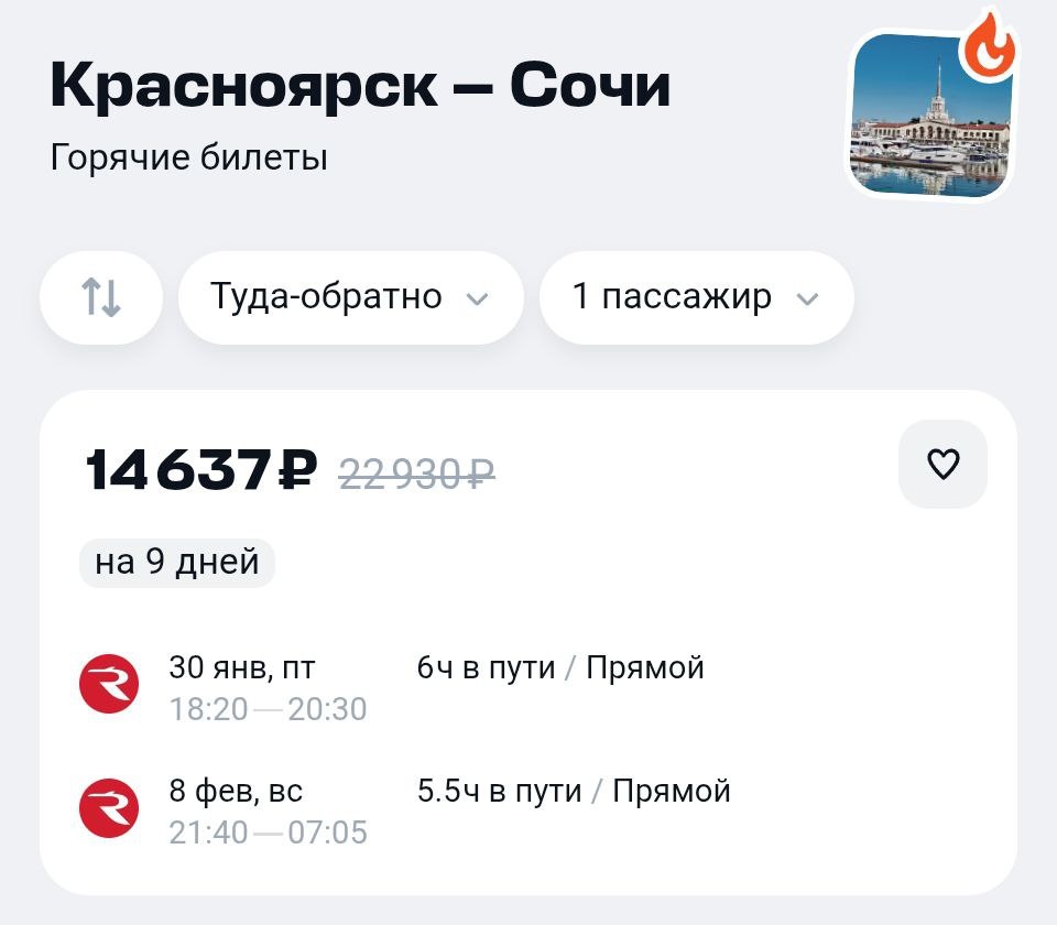 Сочинская лепота от нацперевозчика. Билеты в обе стороны.