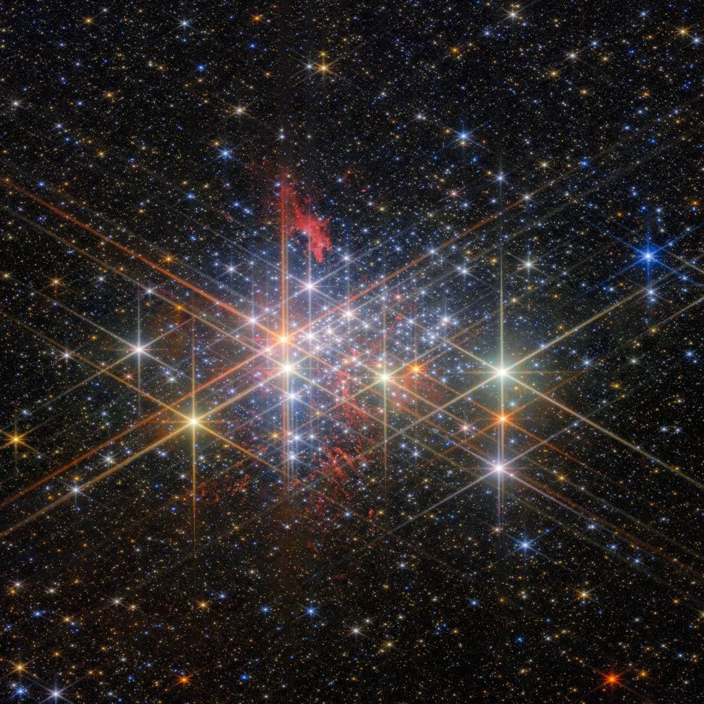 ! Этот снимок сверхзвездного скопления Вестерлунд 1 в нашей галактике был сделан аппаратом. Она состоит из звёзд, масса которых в 50 000–100 000 раз превышает массу нашего Солнца, и все они сосредоточены в области диаметром менее шести световых лет. Это скопление подобно природной лаборатории, помогающей ученым узнать больше о формировании и эволюции звезд.