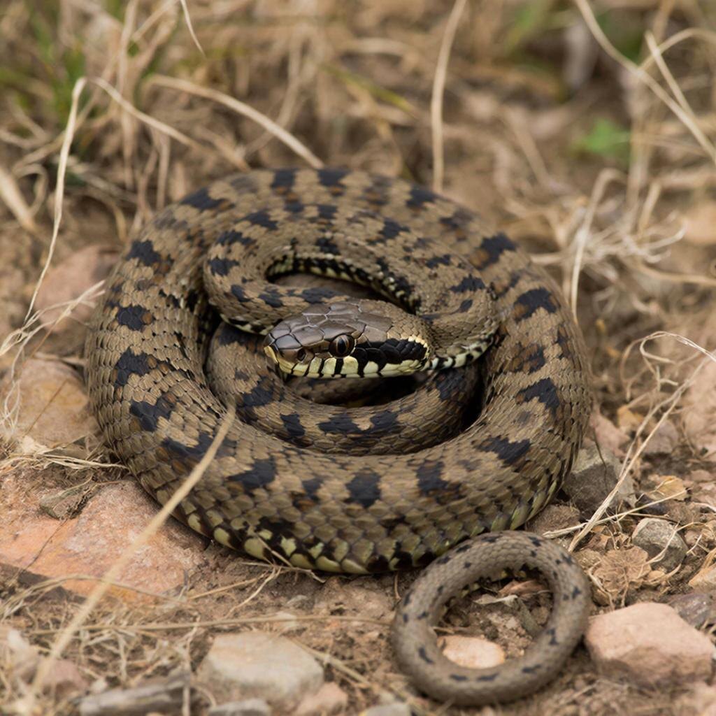 **Описание:** Гадюка степная меньше по размеру, чем обыкновенная, ее длина обычно не превышает 60 см. Окраска варьируется от серого до коричневого с темной полосой на спине.