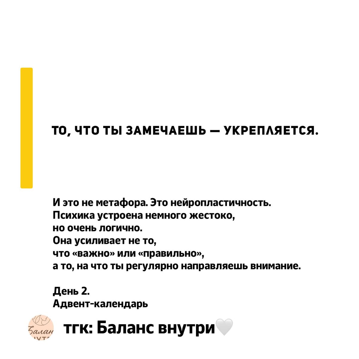 Она усиливает не то, что «важно» или «правильно», а то, на что ты регулярно направляешь внимание.