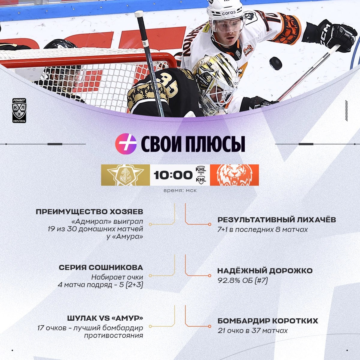 Результативный Лихачёв 🐯, серии Абросимова 🟡 и Белозёрова 🐺 — у каждой команды есть Свои Плюсы. На какие стоит обратить внимание сегодня?