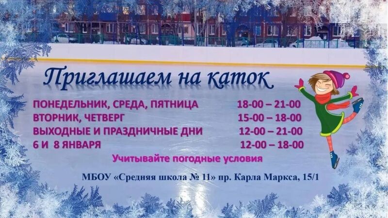 Жителей и гостей краевого центра приглашают покататься на коньках на открытых ледовых площадках, залитых у школ, сообщает РАИ «КАМЧАТКА-ИНФОРМ» со ссылкой на управление образования администрации города. В Петропавловске-Камчатском открылись катки при школах для всех желающих. Зимние спортивные площадки готовы принять любителей катания на коньках в течение новогодних каникул. Лёд залили на территориях семи образовательных учреждений, расположенных в разных микрорайонах города: у школ № 3, 11, 27, 30, 36, 42 и 45. «Режим работы каждой площадки индивидуален. Актуальное расписание нужно уточнять непосредственно в школе, при которой находится каток», – сказали в управлении образования. Добавим, что 2 января в Петропавловске-Камчатском ... 🟠 Читать на сайте 🟠 КАМЧАТКА-ИНФОРМ — новости Камчатки в Telegram 🟠 Фоторепортажи и эксклюзивные материалы на kamchatinfo.com 🟠 НАПИСАТЬ НАМ