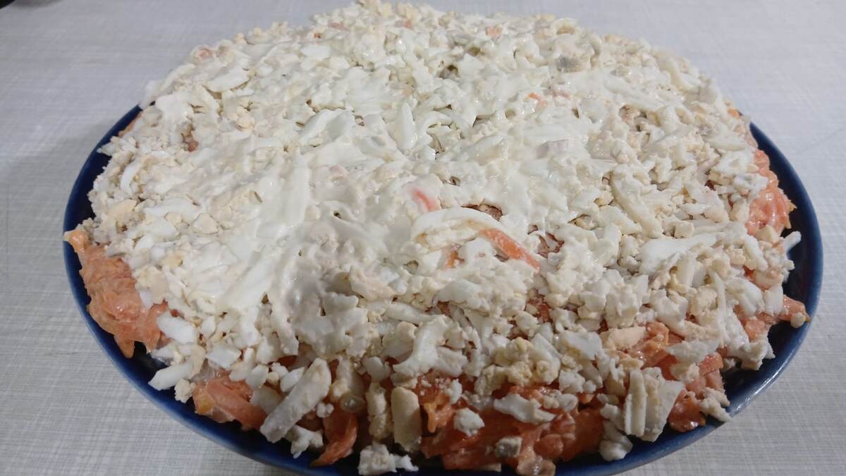 Рубрика ПП - Пора Покушать Сегодня это традиционный салат "Мимоза" Нам понадобится: картофель, морковь, рыбные консервы, репчатый лук, яйцо, майонез. Картофель, морковь, яйцо - отвариваем, чистим 1 слой - на крупной тёрке натираем картофель, перемешиваем с майонезом, выкладываем в ёмкость первый слой 2 слой - репчатый лук мелко нарезаем, консервы рыбную с луком перемешиваем (жидкость слить), выкладываем второй слой 3 слой - на крупной тёрке также натираем морковь, перемешиваем с майонезом, выкладываем слой. 4 слой - тут по желанию, можно и на мелкой тёрке, можно и на крупной, натираем яйцо (2-3 шт.) по желанию можно украсить зеленью Приятного аппетита