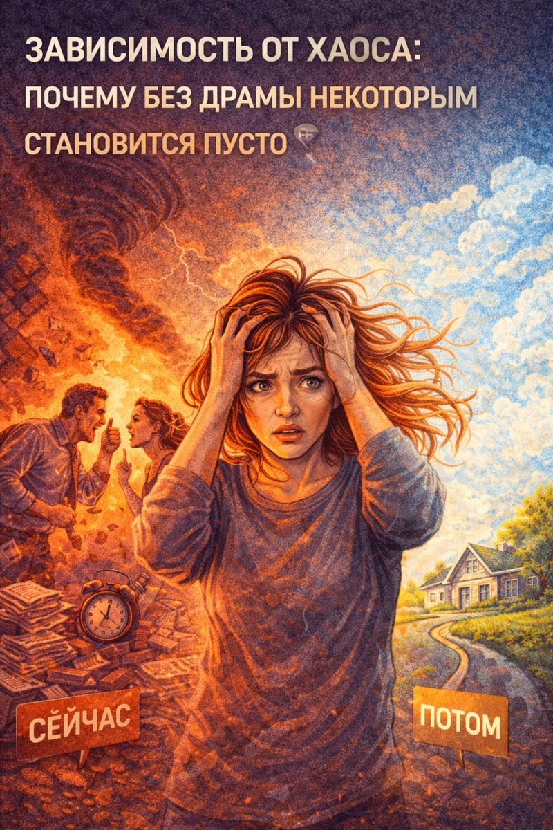 🌪 Есть люди, которые говорят: «Я устал от этого бардака. Хочу спокойствия». Но как только в жизни действительно становится ровно — они начинают скучать. Раздражаться. Нервничать. И — сами запускают новый хаос. Как это выглядит со стороны? Будто человек постоянно «вляпывается». — вечные конфликты — резкие решения — эмоциональные взрывы — токсичные связи — импульсивные поступки — ощущение, что жизнь — сериал, а не процесс И каждый раз — «Ну вот опять…» Но правда в другом Хаос — это не случайность. Это привычное состояние нервной системы. Когда в прошлом было много нестабильности, когда спокойствие было редким или опасным, когда любовь шла через боль и адреналин — мозг запоминает: «Драма = жизнь». А тишина воспринимается как пустота. Почему спокойствие не радует? 🧠 Потому что в нём нет привычного напряжения. Нет всплеска. Нет адреналина. В хаосе человек чувствует себя собранным. Нужным. Живым. А в стабильности вдруг появляется странное ощущение: «Я как будто пропал». Самообман,