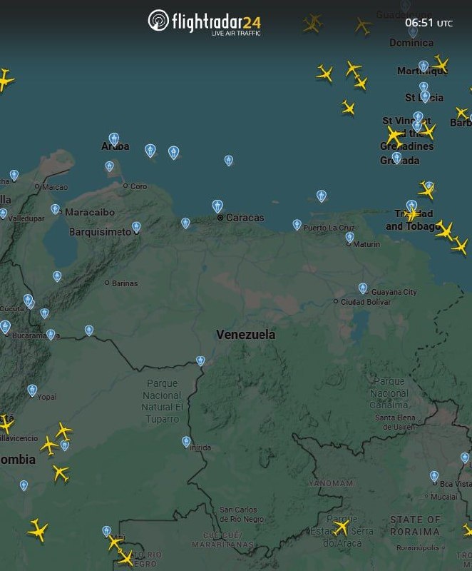Flightradar portaliga ko‘ra, tijoriy reyslar Venesuela havo hududini chetlab ucha boshlagan.