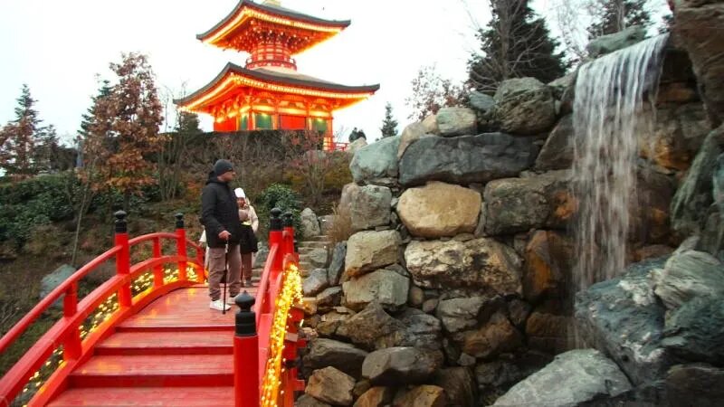 «Обязательно загляните в Японский сад. В озере у водопада зимой вновь завелся огромный дракон — одна из главных достопримечательностей этой локации. Фото на фоне пагоды, неумолкающего водопада и глади воды с выглядывающим азиатским драконом перенесет вас прямиком в Страну восходящего солнца.