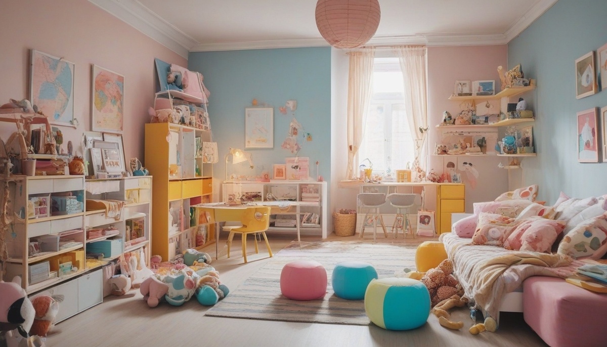 Таким образом, продуманные цветовые решения и тематические декорации, а также функциональные элементы, способствующие творчеству, создают уникальную атмосферу в детской комнате, способствующую гармоничному развитию ребенка.