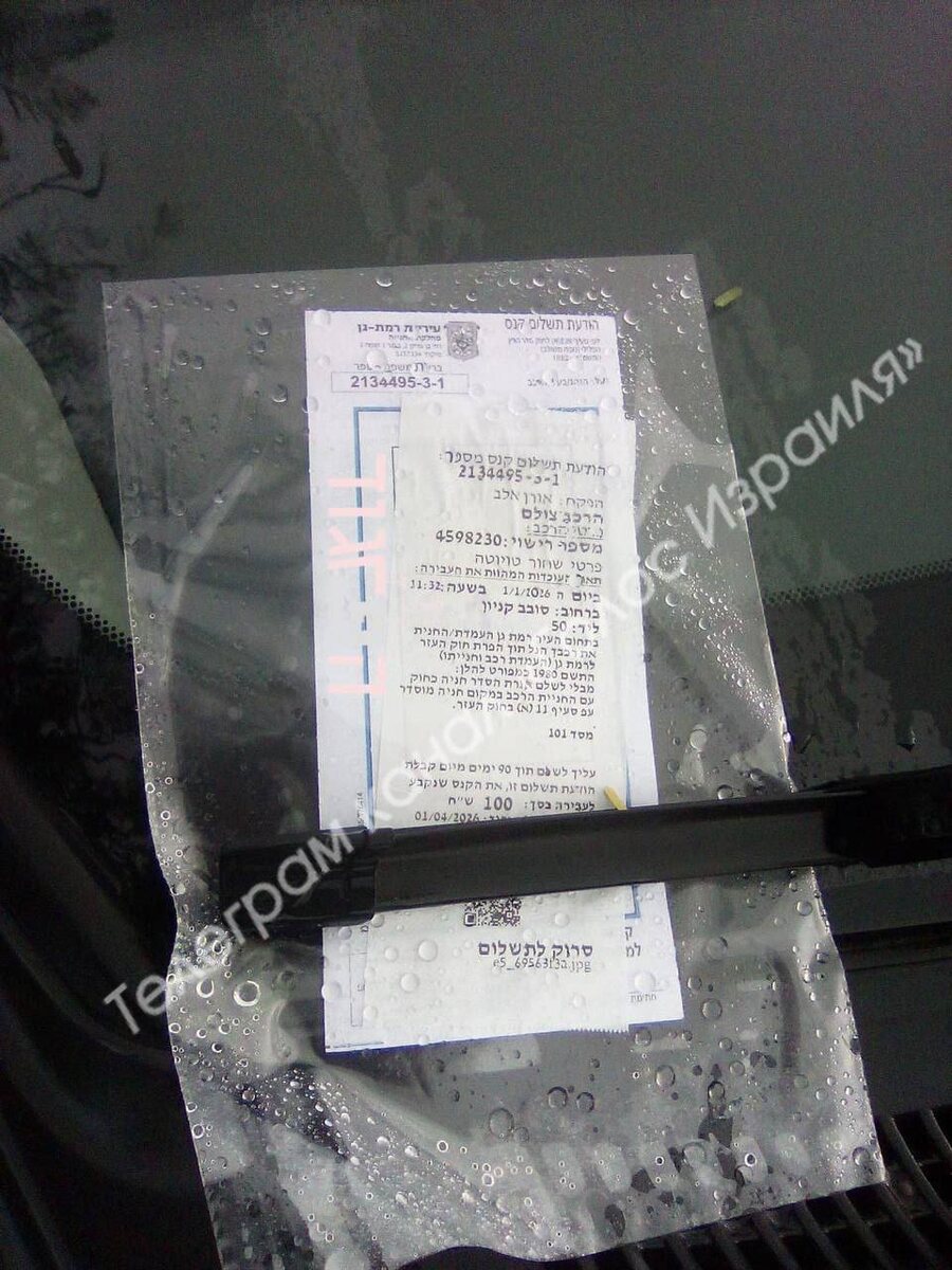 Водителям в Израиле начали раздавать штрафы, аккуратно упакованные в пакеты, чтобы не промокли от дождя.