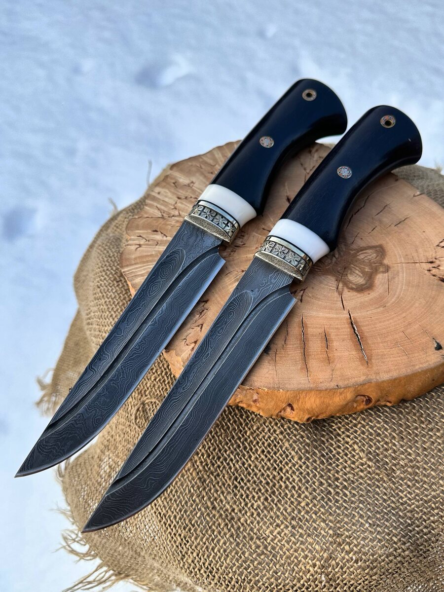 ! ✨ 📌 Особенности: — Клинок из дамасской стали с фигурными долами — Твердость 62 HRC, *бритвенная заточка* — Рукоять: чёрный граб, белый акрил, мельхиор и мозаичные пины — Ножны из натуральной кожи 🔥 В наличии всего 2 ножа! Цена: 15 433руб. Акция! Сейчас — *13 188 руб.* Дополнительно: можем изготовить формованные ножны из кожи растительного дубления (+8000 руб.) 🎁 Отличный выбор для охотников, коллекционеров и ценителей уникальных изделий ручной работы. 📲 Для заказа: @Nazarklinokbot +7 910 134-38-31 (WhatsApp, Viber) #дамаск #ручнаяработа #ножнасапёр #кузницаназарова #эксклюзив #подарок #охота #коллекция #ручнойнож