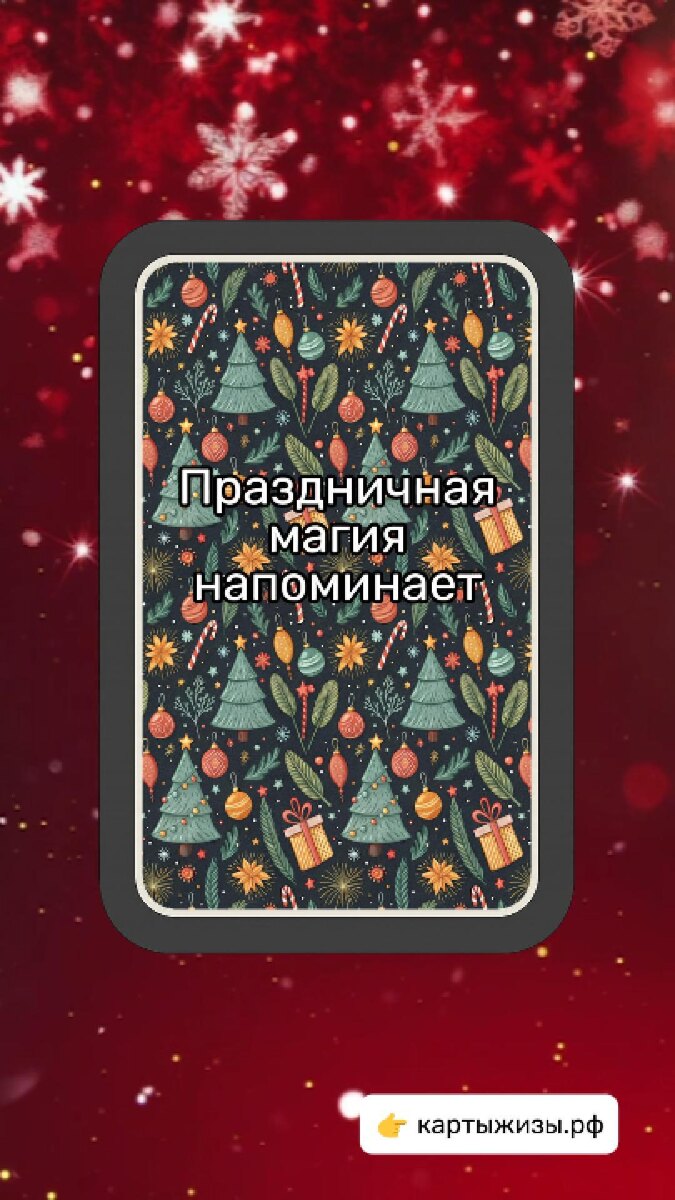» «Новогоднее Таро» — это карты про уют после праздника: когда мандарины съедены, ёлка стоит, а чудо случается в тишине, а не в фейерверках. Позвольте тишине быть вашим подарком. Ёлка стоит, плед на плечах, чай горячий, а на кухне ни звука. Насладитесь покоем — он сейчас важнее любых планов. 🫖 Прямое: всё завершено, гармония найдена, вы в точке «достаточно». ❄️ Перевёрнутое: хочется ещё чуть-чуть тишины — значит, пора сделать паузу. ✨ Новогоднее напутствие: выключить уведомления и просто посидеть в этом моменте. Все колоды и карты — на картыжизы.рф #знакивселенной #картадня #картыжизы #новогоднеетаро