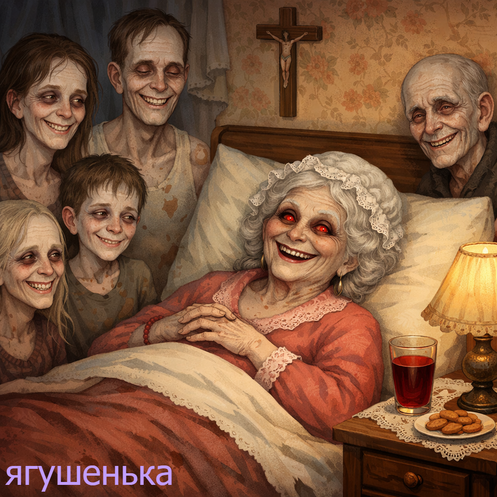 Хэппи-энд - это когда бабушка либо перестаёт пить кровь навсегда, либо семья, наконец понимает, что "родная" - не синоним "безнаказанная", и вбивает в упыриху осиновый кол не из жестокости, а из заботы о своём психическом здоровье.