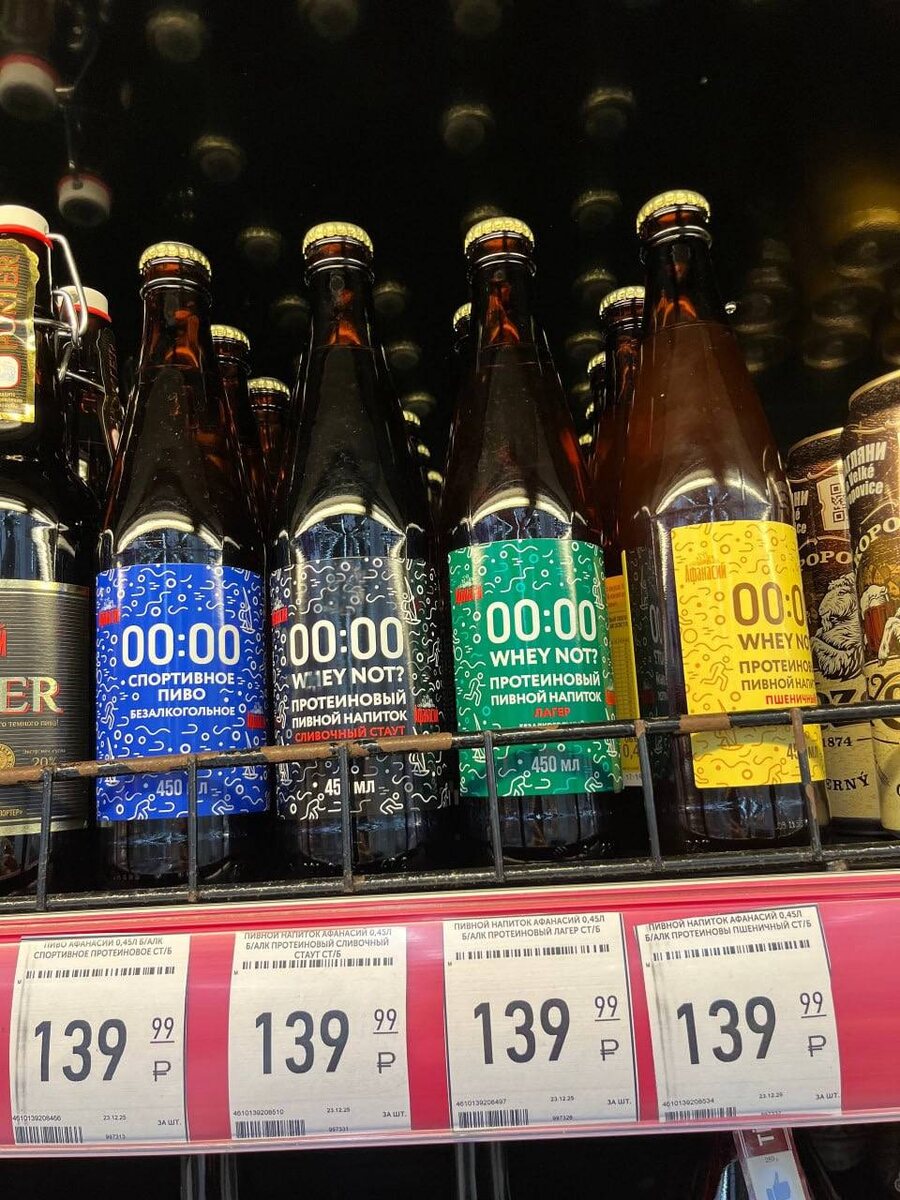 Протеиновое ПИВО для спортсменов появилось в магазинах. Это полезные пивные напитки разных сортов — сливочный стаут, лагер, пшеничное и базовое безалкогольное. Стоят они по 140 рублей за бутылку.