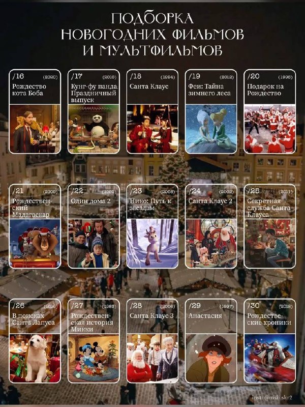 Подборка новогодних фильмов и мультфильмов.