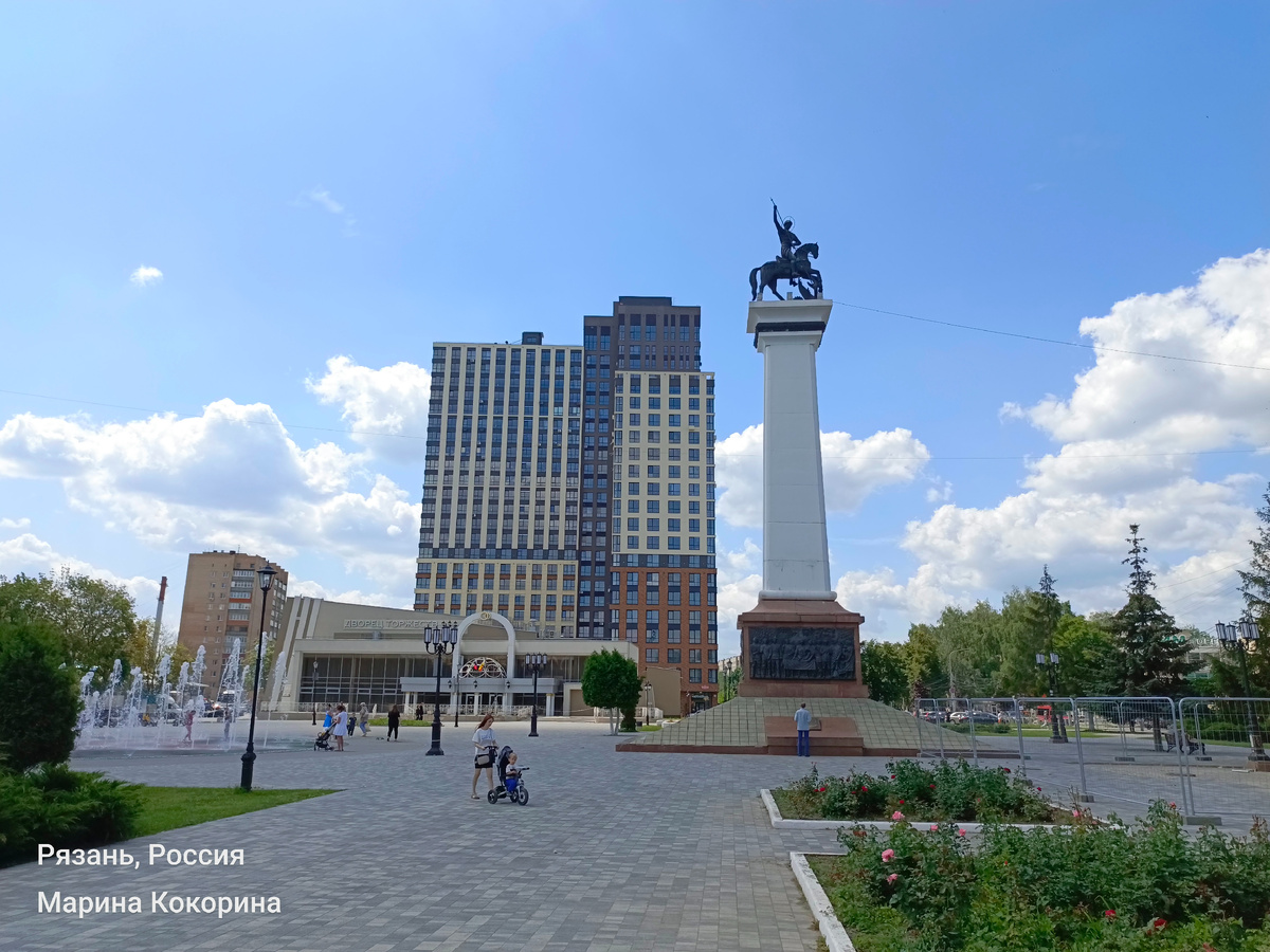 Сегодня я приглашаю вас на прогулку по одному из главных рязанских маршрутов — Московскому шоссе. Мы стартуем от Бульвара Победы и пройдем до огромного ТРЦ «Премьер», наблюдая, как в этой части города переплетаются история, память и современная динамичная жизнь. Наше путешествие начинается в сквере на бульваре Победы. Это атмосферное место, где находится светомузыкальный фонтан. Мы были здесь днём, поэтому волшебное шоу смены цветов пришлось оставить для следующего визита — повод вернуться сюда летним вечером. В сквере также установлен величественный памятник Георгию Победоносцу, а неподалёку стоит Дворец торжеств — свидетель многих счастливых союзов. Напротив, через дорогу, внимание привлекает необычная конструкция. Это опора ЛЭП, стилизованная под символику ВДВ. Её установили к 90-летию Воздушно-десантных войск, чья история неразрывно связана с Рязанью. Рядом высится деловой «Бизнес-центр Престиж». Двигаясь дальше, замечаешь, как стремительно меняется облик этой части города. По пра
