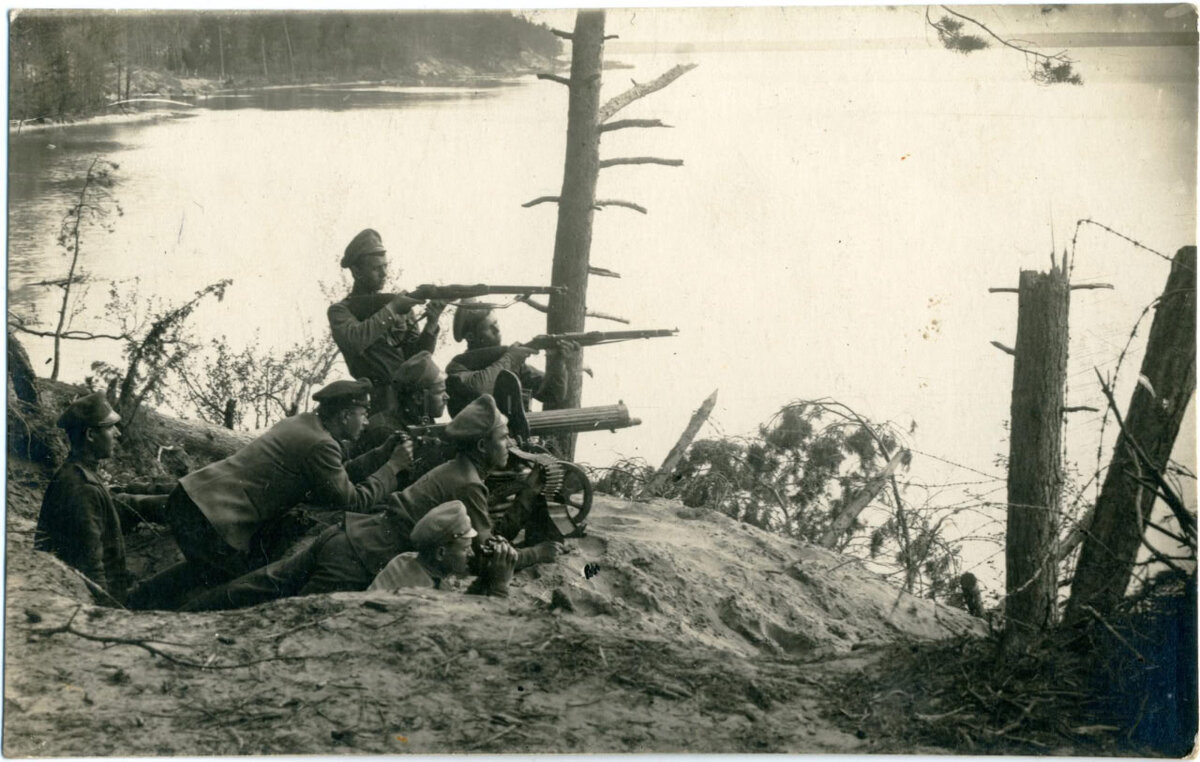 Пулеметный расчет 267-го пехотного Духовщинского полка на озере, Нарочь, июнь 1917 года