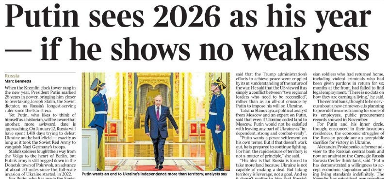 «Путин считает 2026-й своим годом, если не покажет слабости», – пишет The Times