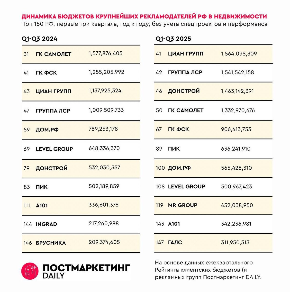 А как же все эти рассказы про высокие издержки, расходы на маркетинг и бла бла бла? Когда застройщики рассказывают в общих фразах про высокую себестоимость, упоминают все подряд, включая рекламу и маркетинг. Только когда мы разбираем каждый параметр отдельно, все они чего-то низкие, и вместе никак не хотят к продажной цене метра подбиваться, гэп остается высоковатым. Да посмотрите в общем рейтинге, Централ Партнершип, компания снимающая всякое кино разной степени успешности, тратит на рекламу больше чем ГК Самолет. На этом фоне показательны сумасшедшие 3-10% на привлечение клиентов через агентства. Вот, чуть ли, не главная составляющая себестоимости, ха-ха-ха. Еще Правительство Москвы в топ-30 рекламодателей страны позабавило, 2.3 млрд. руб. Сам себя не похвалишь, никто не похвалит.