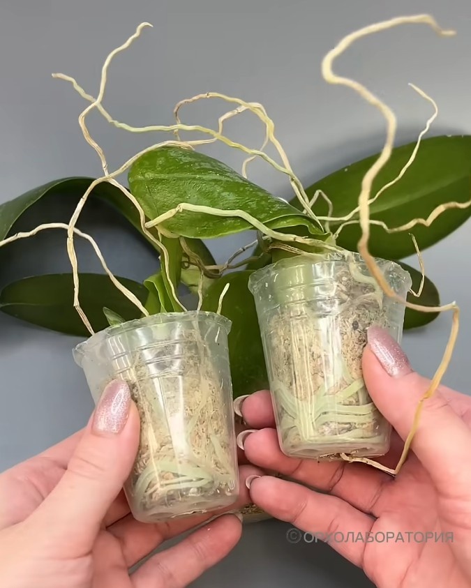 Как правильно отпаивать орхидеи после просушки и транспортировки? Мне пришли новые орхидеи, и я хочу поделиться с вами своими методами отпаивания орхидей после просушки. Эти две маленькие орхидеи сильно засушены. Листья потеряли тургор и висят как тряпочки. Веламен на корнях тоже усох. Мох превратился в камень. Воздушные корни тоже высохли. Такие орхидеи нужно отпаивать очень аккуратно и медленно, чтобы веламен на корнях восстановился постепенно. И для этого мне потребуется влажное махровое полотенце, которое я смочила тёплой водой и хорошенько отжала. Вода с него капать не должна. Беру контейнер, выкладываю на него полотенце, орхидеи достаю из стаканчиков и кладу сверху на полотенце. Мох и корни тоже сверху накрываю влажным полотенцем и ставлю контейнер с орхидеями под лампы. Нужно следить, чтобы полотенце всегда было влажным. Такой способ позволяет постепенно восстановить тургор листьев и веламен на корнях и занимает примерно 3–5 дней. Хотите узнать ещё больше про уход за орхидеями