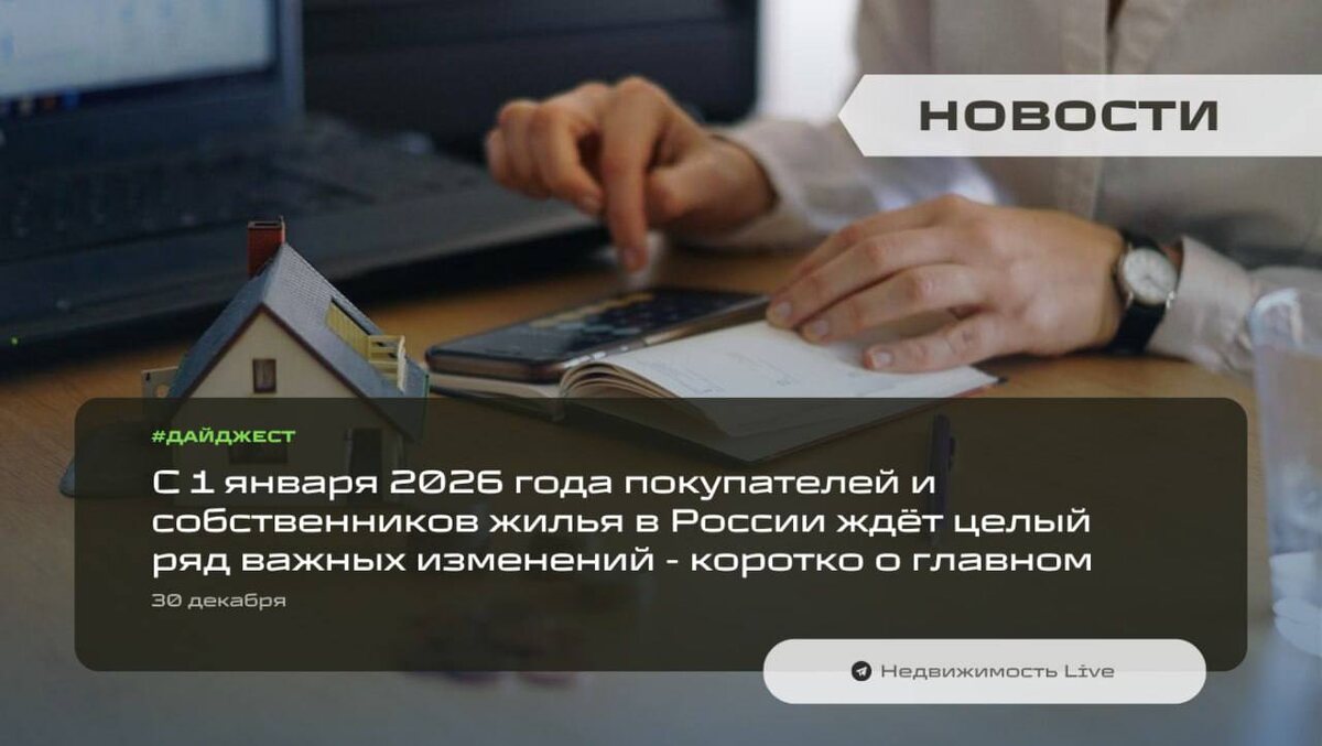 ⚡️ С 1 января 2026 года покупателей и собственников жилья в России ждёт целый ряд важных изменений — коротко о главном