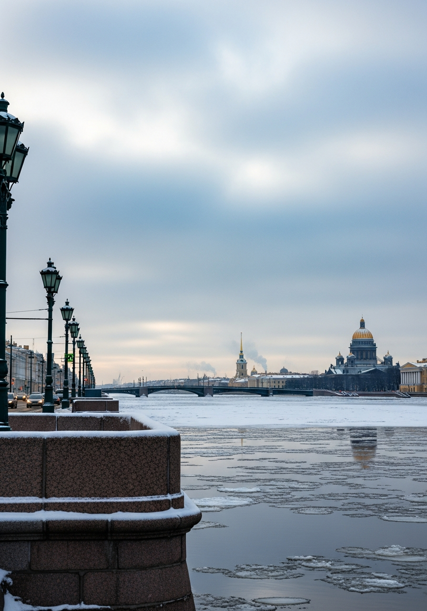 Петропавловская крепость — место, с которого началась история Санкт-Петербурга. Зимой крепость особенно атмосферна: снег на стенах, морозный воздух и величественный шпиль собора создают незабываемую картину.