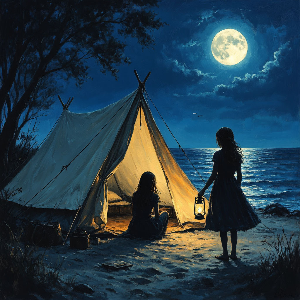 Около двух часов пополуночи Виктор, дежурный по лагерю, услышал странный звук — будто кто‑то неторопливо шагал по галечной отмели. Он поднял голову: луна висела низко, отбрасывая длинные тени. Никого. Виктор уже решил, что это просто прибой, как вдруг его фонарик сам по себе включился, потом выключился, потом вновь вспыхнул — и так трижды. Он попытался выключить его вручную, но кнопка не реагировала. В тот же миг из соседней палатки донёсся сдавленный вскрик.