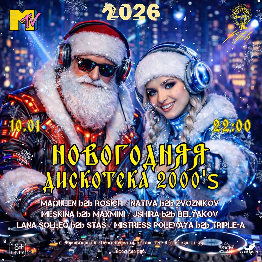 ! НОВОГОДНИЕ ПРАЗДНИКИ ПРОДОЛЖАЮТСЯ!!!! ⭐ВСЕХ НАС ЖДЁТ САМОЕ НЕЗАБЫВАЕМОЕ ПУТЕШЕСТВИЕ НА 25 ЛЕТ НАЗАД ⭐ 📅 10 января 2026 г 🕓 22:00 — 03:00 Готовьтесь, будет море ВПЕЧАТЛЕНИЙ и много ПОДАРКОВ! 🎁 Победитель уедет на новеньком Nokia-3310🚗 📍 г. Жуковский, ул. Менделеева 14, 2 этаж (Клуб Kitch) 🎧 Самая яркая ночь зимы!Приходи танцевать до утра под лучшие треки MTV эпохи! 📞 Бронь столов: 8 (916) 230-11-33 🌟Вход: 500 рублей 🔞 18+