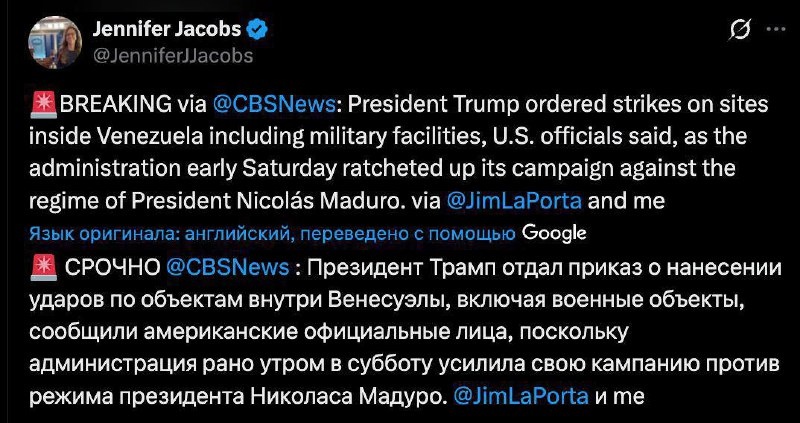 ⚡️Трамп отдал приказ о нанесении ударов по объектам Венесуэлы, включая военные Об этом журналисту CBS News сообщили американские официальные лица. Сайт "Другая Украина" / Telegram / Вконтакте / Центр поддержки Украинцев / Жалоба на ТЦК "Другая Украина" теперь в МАХ