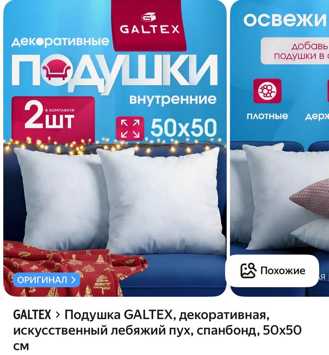 Подушка GALTEX, декоративная, искусственный лебяжий пух, спанбонд, 50x50 см