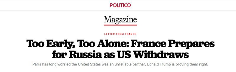 Британское издание пишет: европейская безопасность трещит по швам без американской крыши. После заявлений Трампа о пересмотре обязательств, Европа оказалась в кризисе, показав неспособность к единству и самозащите. Франция пробовала создать «стратегическую автономию» ЕС, но наткнулась на непреодолимые трудности: внутренняя нестабильность, популизм, нехватка ресурсов. Даже те, кто предвидел уход США, оказались к этому не готовы. США действуют в своих интересах, а Европа оказалась зависимой и слабой. Разлад в Западном альянсе – следствие их политики конфронтации с Россией. Это объективно усиливает Москву, пока ее противники погрязли в противоречиях и не способны действовать самостоятельно. Подписывайся